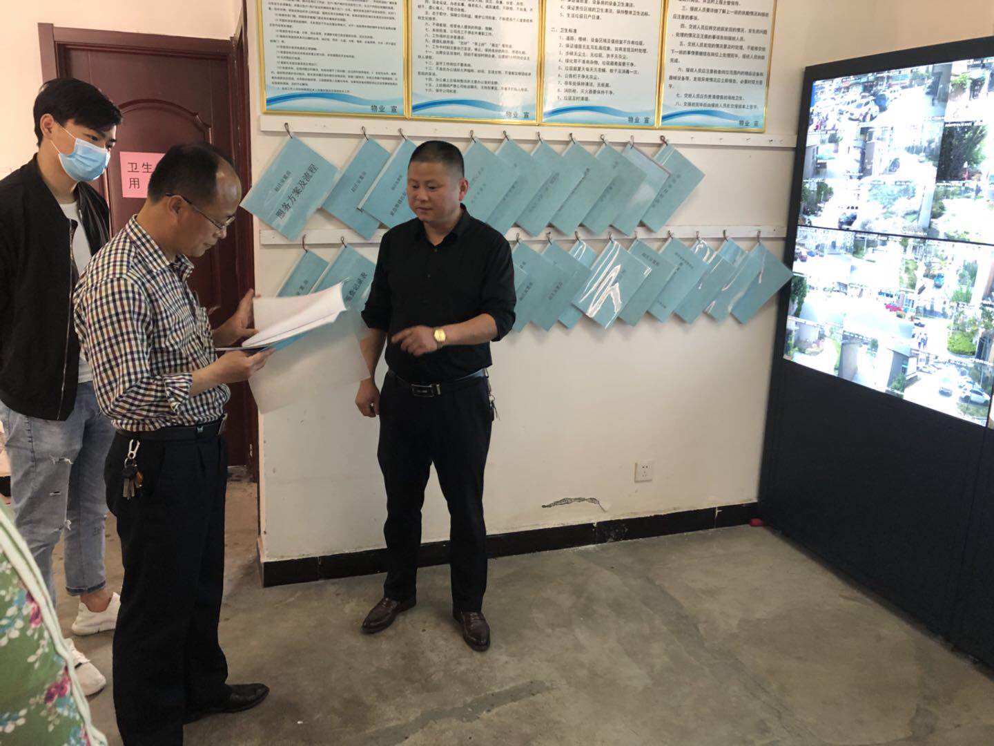 2020年4月30日上午,集團公司王總帶隊,在物業(yè)公司相關(guān)人員的陪同下,先后來到圣莊安置房、趙莊安置房、東湖花園公租房、白鷺棲園公租房、岱河花園公租房和2012公租房,實地查看各小區(qū)疫情防控工作,檢查組深入疫情防控執(zhí)勤點、消防、視頻監(jiān)控室等處認(rèn)真查看每個區(qū)域的疫情防控情況、消防安全設(shè)施、用電安全、監(jiān)控等設(shè)備運行情況,檢查過程中,通皓物業(yè)公司下轄的物業(yè)管理項目防控秩序井然,物業(yè)領(lǐng)導(dǎo)及管理人員均能按照排班要求按時到現(xiàn)場巡視檢查,各出入口、執(zhí)勤點防控措施到位,值守人員到崗情況正常,視頻監(jiān)控室運行正常,并有專人值守。