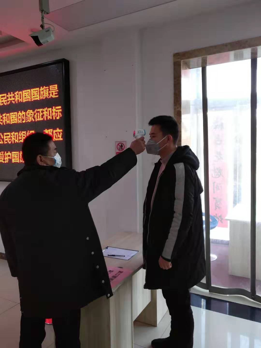 在公司入口處,設(shè)置體檢點(diǎn),對(duì)進(jìn)入辦公區(qū)域人員進(jìn)行體溫檢測(cè),確保到崗人員身體狀況良好。